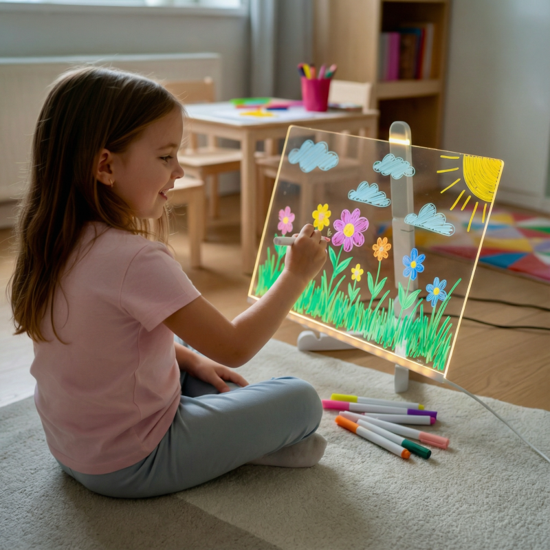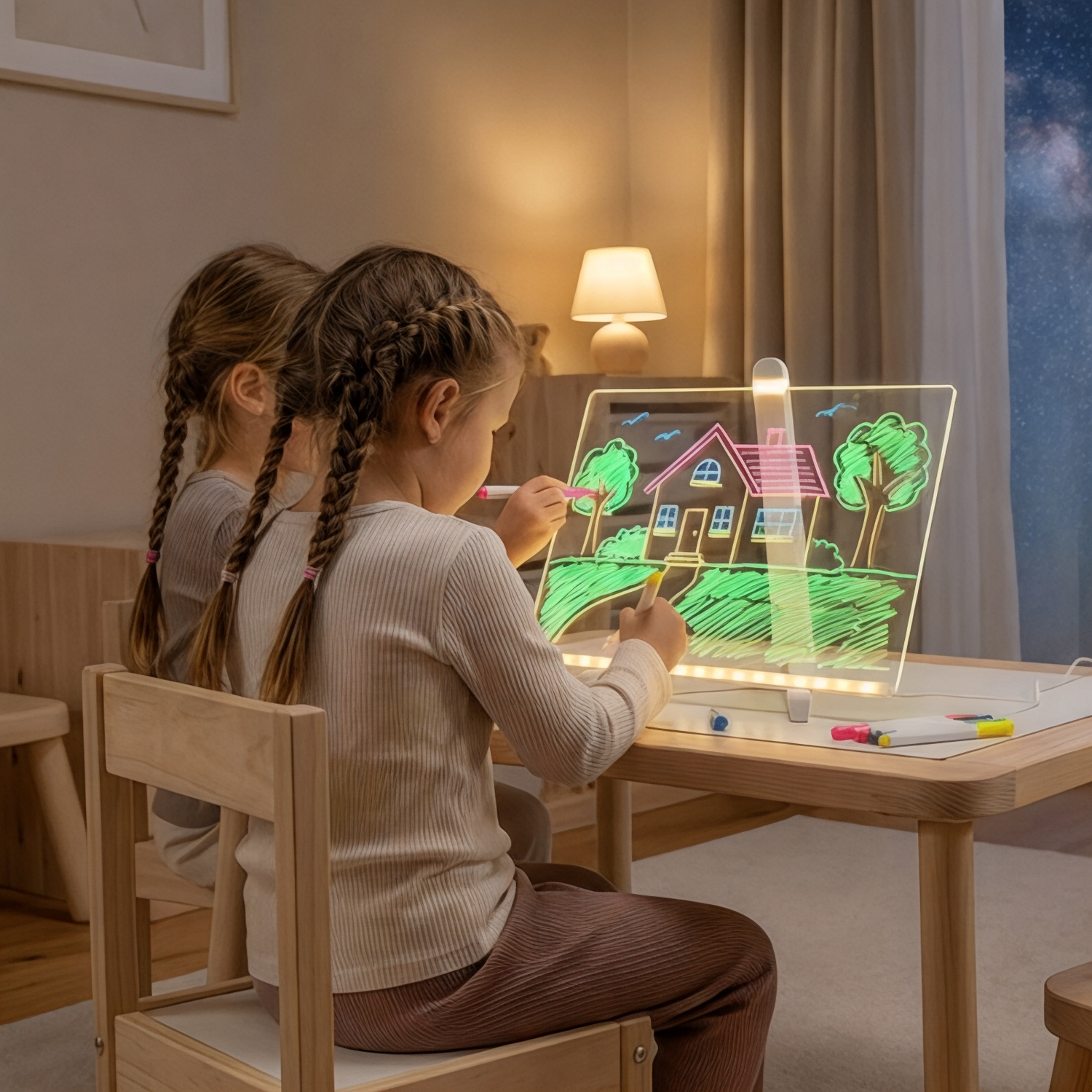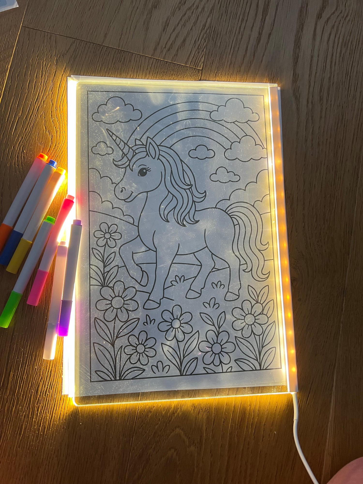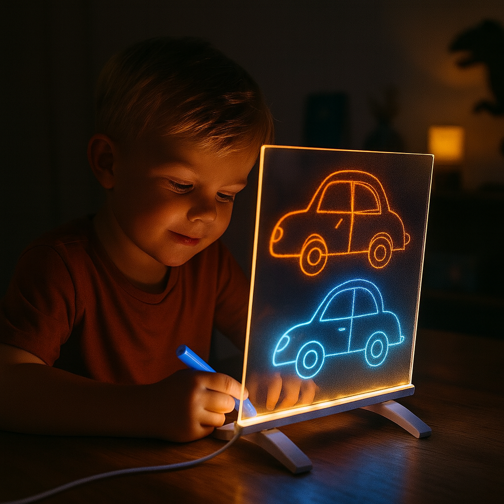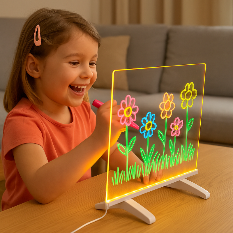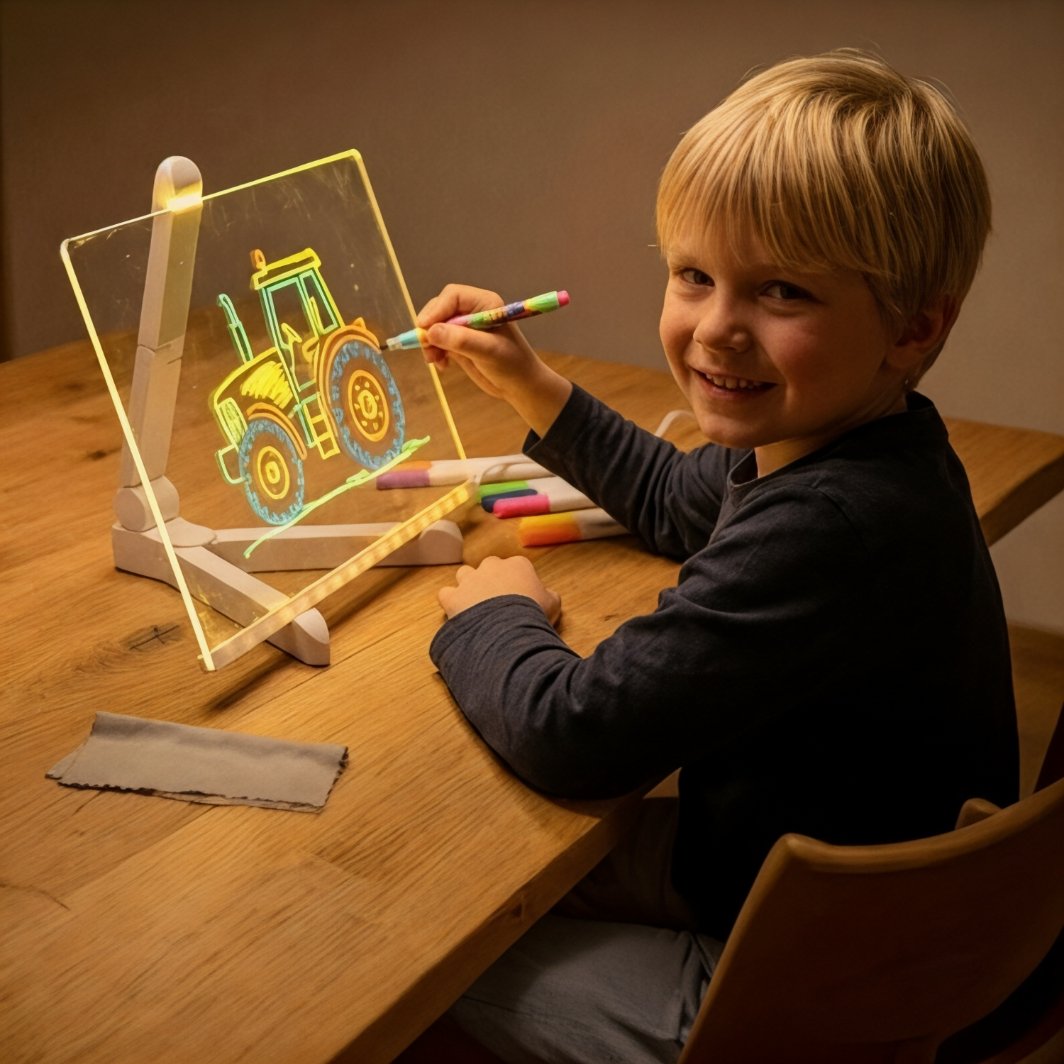 Die LED-Tafel macht Malen zu einem echten Highlight – nicht nur am Tag, sondern auch im Dunkeln. 🌙✨ Die bunten Farben beginnen zu leuchten und verwandeln jede Zeichnung in ein strahlendes Kunstwerk. So wird aus einfachem Kritzeln ein magisches Erlebnis, das Dein Kinder immer wieder begeistern wird.